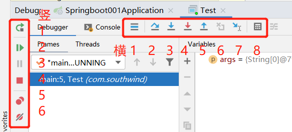 竖 6:让所有断点失效,debug 不再进入断点,要恢复断点,再次点击此按钮即可。