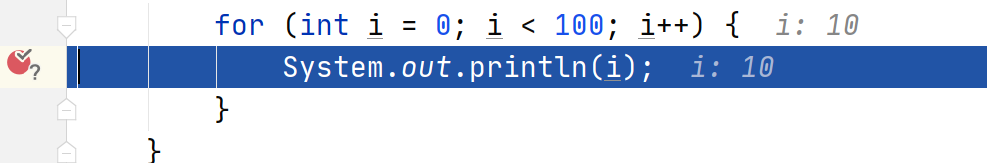 再次执行程序,可以看到 i == 10 的时候进入断点。